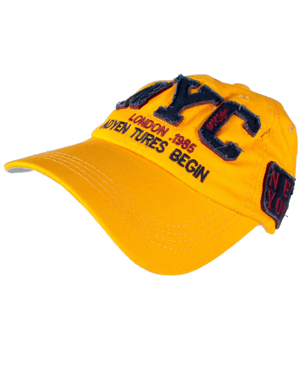 Lippis, NYC, keltainen lippis NYC tekstillä.