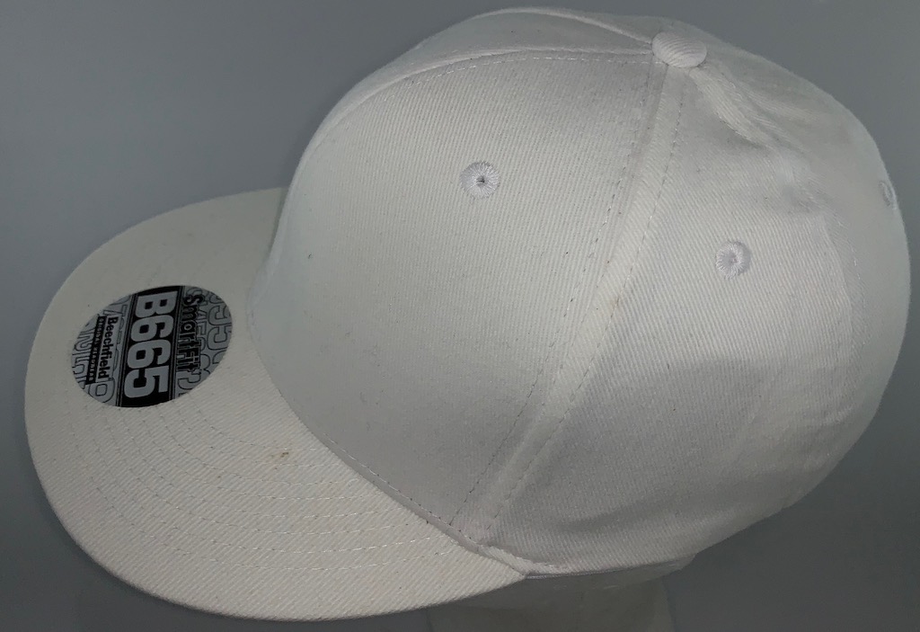 Valkoinen flexfit lippis, joustava aikuisten kokoinen lippis.