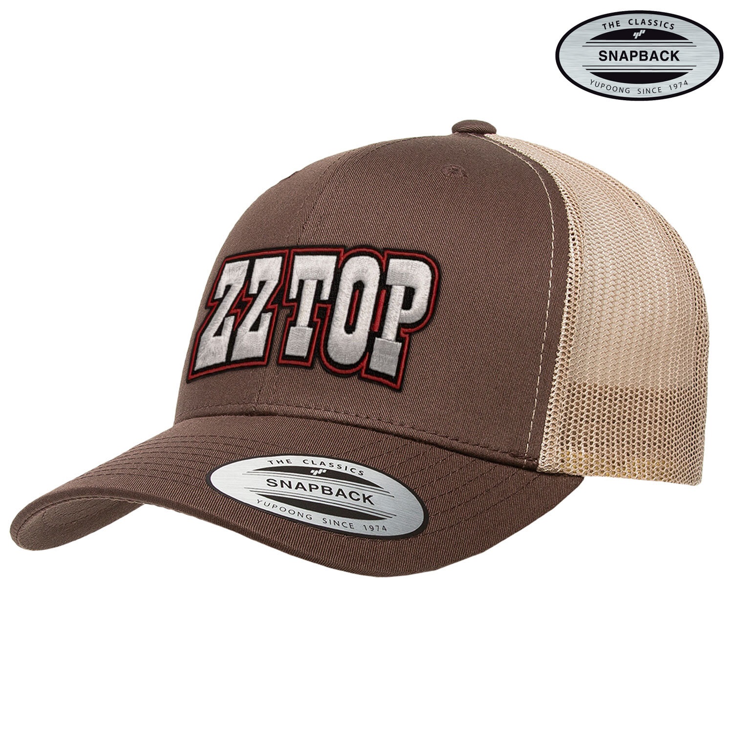 Lippis ZZ-Top Premium Trucker Cap. Snapback säädettävä koko. Ruskea/Khaki trucker-mallinen lippis, kaareva lippa.