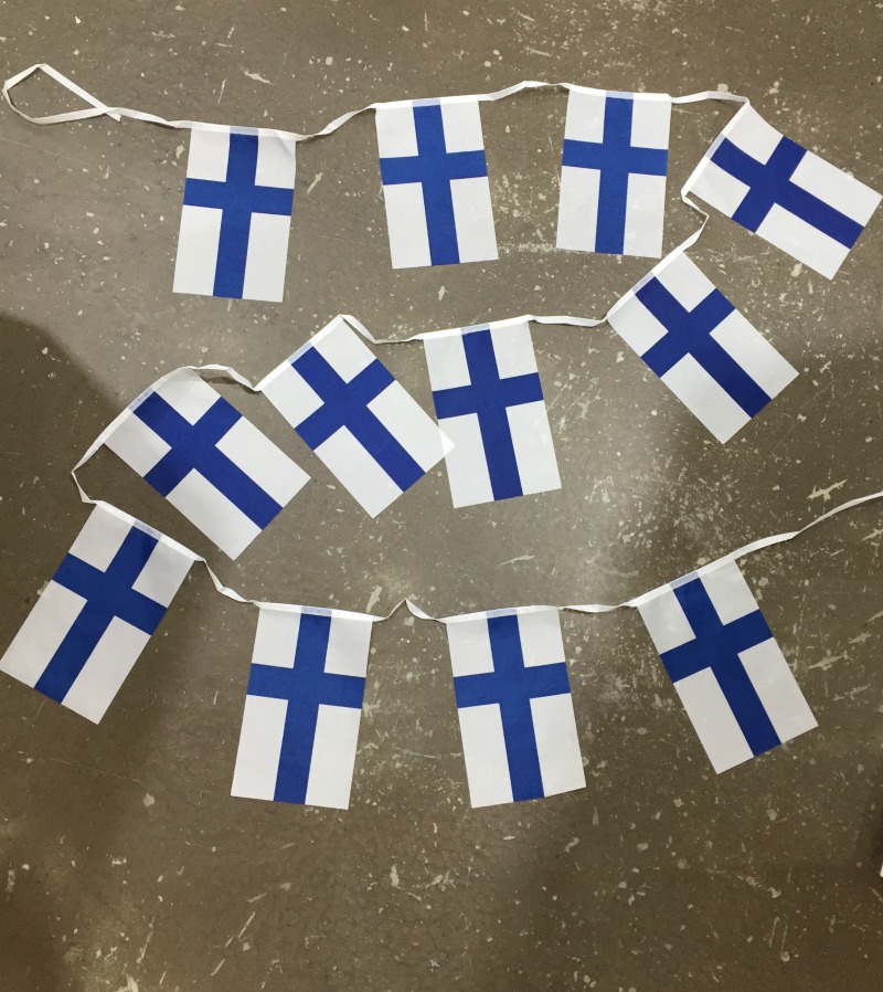 Lippunauha, Suomi Lippujenkoko = 13x22 cm. Lippunauhanpituus 330m Lippunauhassa 12 lippua. Materiaali ohutta, liukaspintaista kangasta.