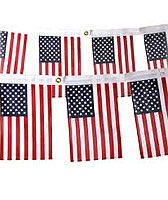 Lippunauha USA, sisä- ja ulkokäyttöön. 12 jalkaa (=3,66 m) pitkä lippunauha, jossa säänkestäviä polycotton-lippuja. Lipun mitat 20 cm x 30 cm. Polycotton-materiaalin tarkka koostumus 70 % polyesteri, 30 % puuvilla. Hienopesu.