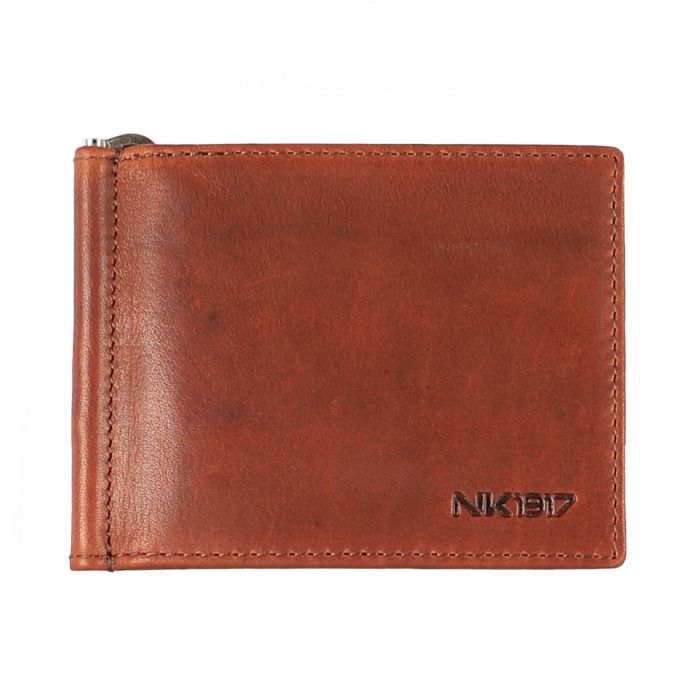 Lompakko, ruskea, RFID suojattu. RFID-suoja tarkoittaa suojausta, jonka ansiosta pankki- ja luottokortteja ei voi skannata lompakon läpi (lompakossa suojakalvo lompakon nahan sisällä). Aitoa nahkaa. Lompakossa paikat kahdeksalle kortille ja seteleille metalliklipsi. Mitat suljettuna 12 cm x 9 cm x 1 cm.