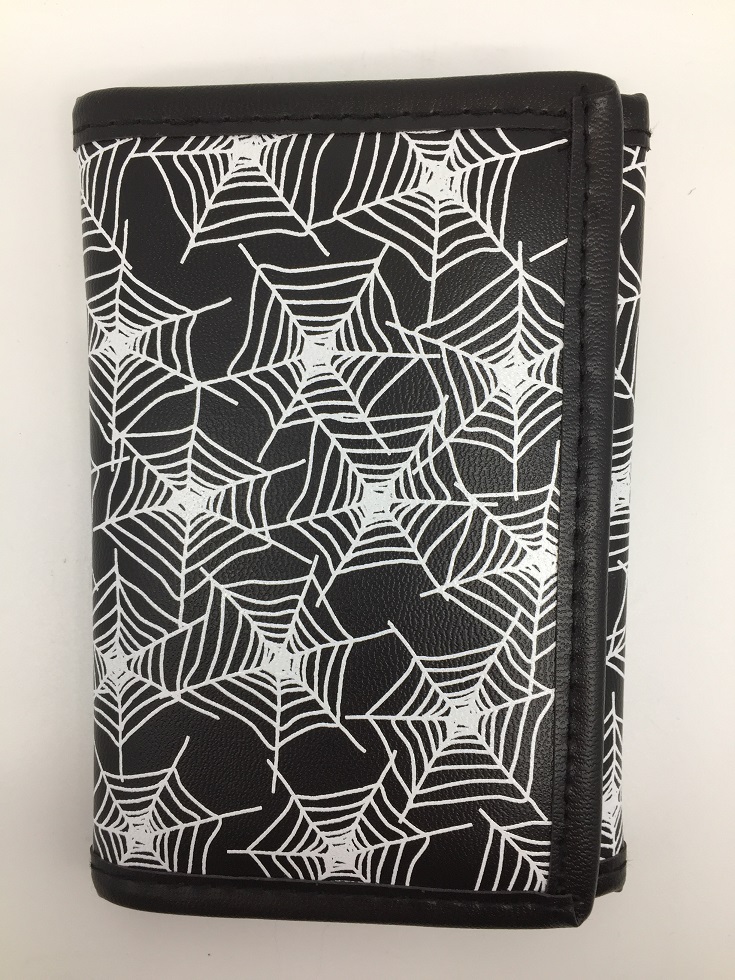 Lompakko, Seitti, ketjulla . Kompaktin kokoinen lompakko, jossa päällinen tekstiilinahkaa, sisältä polyesteria. Lompakossa n. 40 cm:n mittainen, irroitettava ketju. Tarrakiinnitys. Sisällä iso setelitasku, pieni kolikkotasku sekä kuusi pienempää taskua korteille. Yksi taskuista ikkunallinen. Lompakon koko 13 x 8,5 cm (aukinaisena 13 x 25,5 cm).