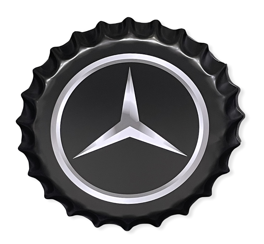 Mercedes Benz -korkki/tarjotin Peltikyltti, halkaisija 40 cm