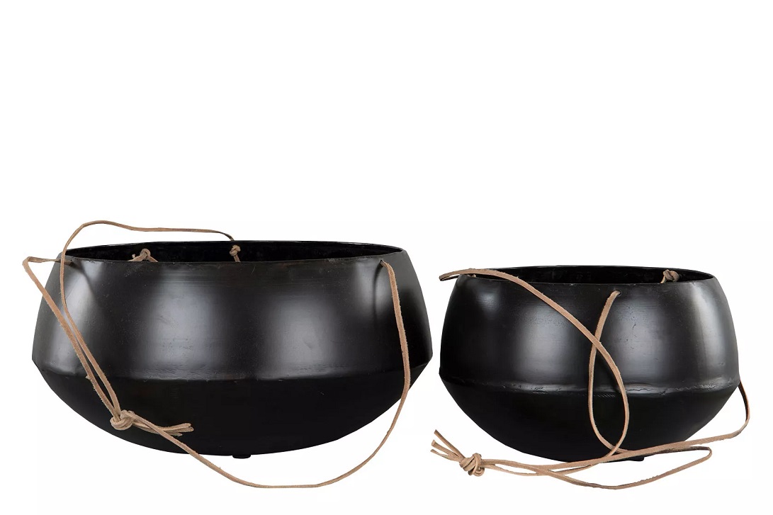 Metallinen amppeli ruukku, musta. A Lot Decoration. Mukana nahkanaru jolla ruukun saa roikkumaan. Ruukkua voi toki käyttää myös pöydällä, ilman amppelinarua. Halkaisija 32 cm, korkeus 18 cm (L-koko).