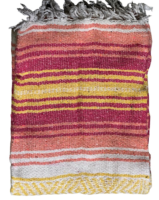 La Montana Mexico viltti. Väriraidat: Coral/Melon/Yellow/White. Mitat n.180 x 130 cm. Made in Mexico.