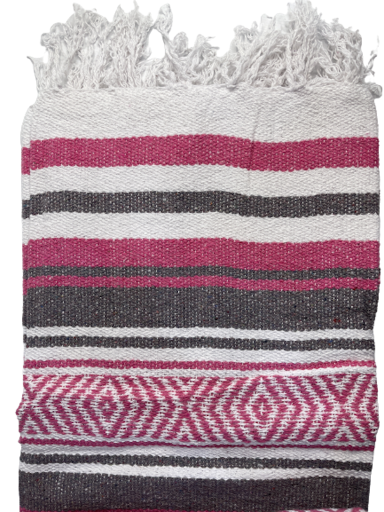 Mexico viltti Hot Pink/Gray/White Mexican Yoga Blanket by Vera Cruz