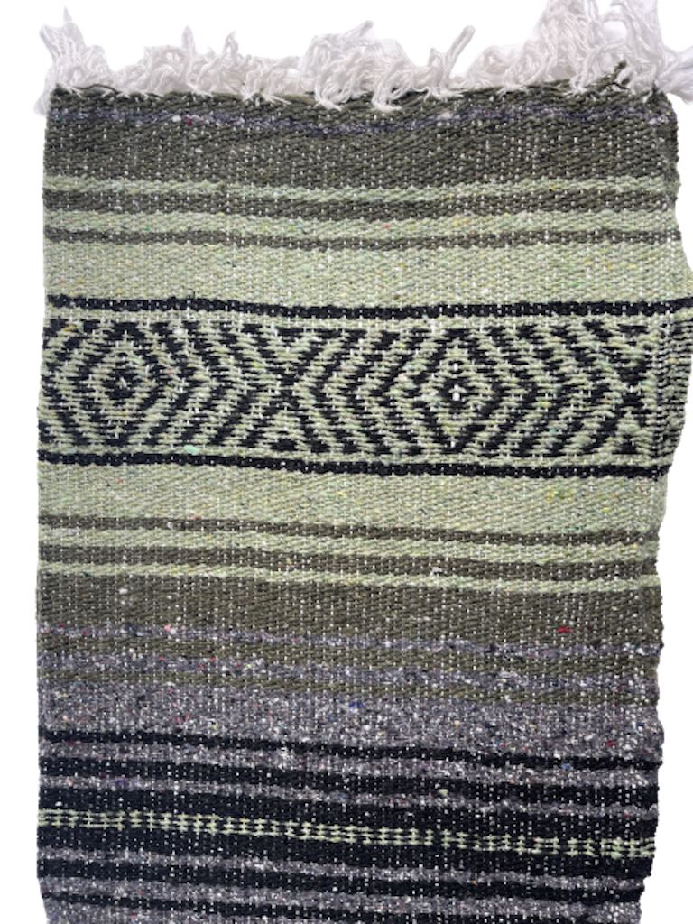 Kierrätetyistä kuiduista tulee pehmeämpiä jokaisen pesun yhteydessä, mikä tekee meksikolaisesta peitosta loistavan huovan käpertyä yöllä, mutta se on myös riittävän kestävä kestämään peiton kulumista ja kulumista. muut ulkona retket. Hiilen, hopean ja valkoisen meksikolainen huopa, jonka mitat ovat noin 74 ?50?, on oikea ja se voidaan rullata vaivatonta kuljetusta tai varastointia varten. Valitse muista peitteistä tai vastaavista huppuista, jos haluat sovittaa yhteen värejä ja tyylejä rohkean lausunnon antamiseksi.