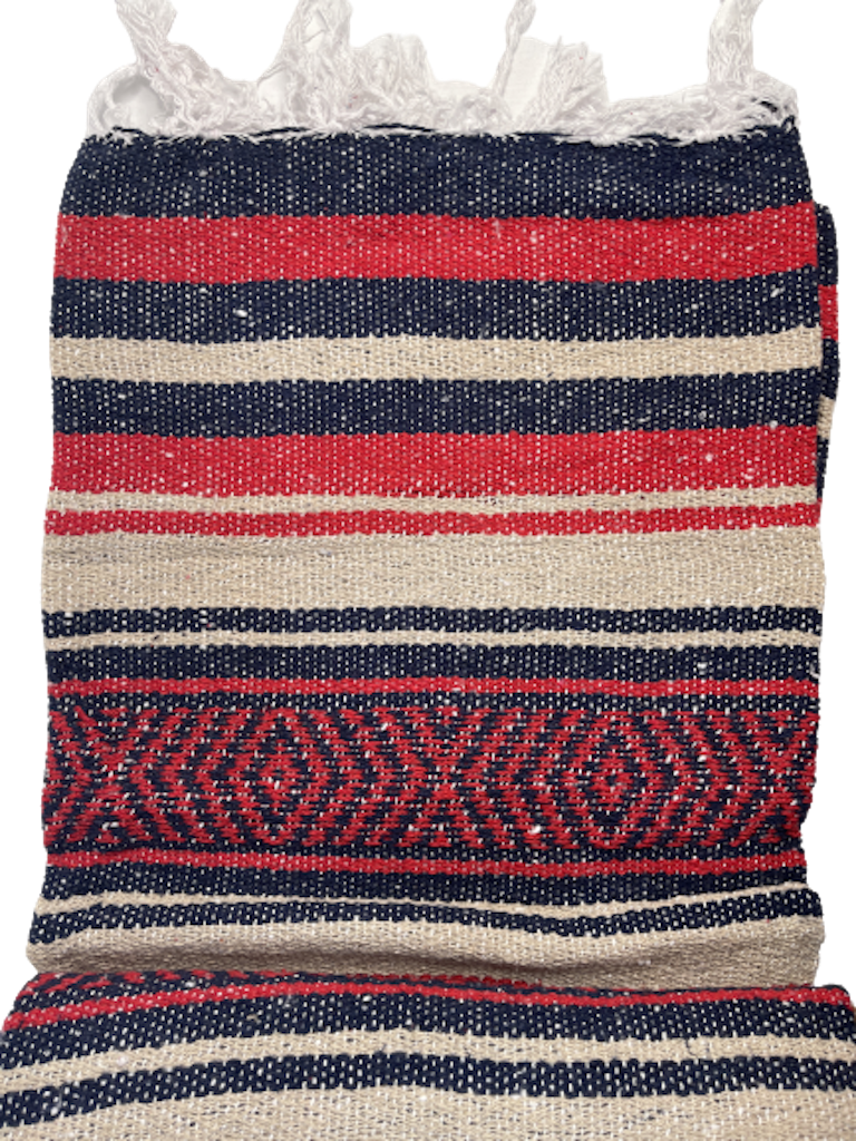 Mexico viltti Red/Navy/Tan Mexican Yoga Blanket by Vera Cruz