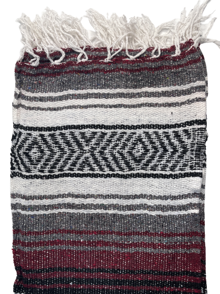 Kierrätetyistä kuiduista tulee pehmeämpiä jokaisen pesun yhteydessä, mikä tekee meksikolaisesta peitosta loistavan huovan käpertyä yöllä, mutta se on myös riittävän kestävä kestämään peiton kulumista ja kulumista. muut ulkona retket. Hiilen, hopean ja valkoisen meksikolainen huopa, jonka mitat ovat noin 74 ?50?, on oikea ja se voidaan rullata vaivatonta kuljetusta tai varastointia varten. Valitse muista peitteistä tai vastaavista huppuista, jos haluat sovittaa yhteen värejä ja tyylejä rohkean lausunnon antamiseksi.