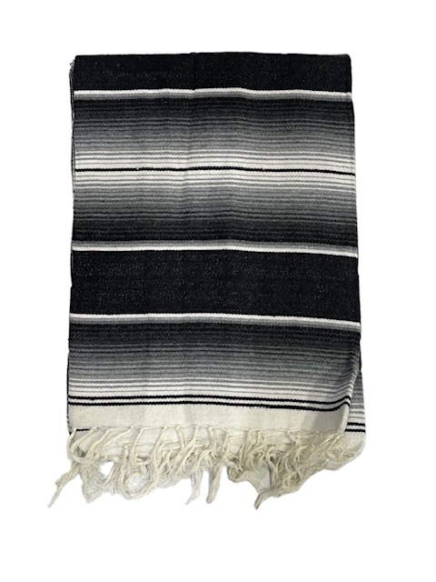 Kierrätetyistä kuiduista tulee pehmeämpiä jokaisen pesun yhteydessä, mikä tekee meksikolaisesta peitosta loistavan huovan käpertyä yöllä, mutta se on myös riittävän kestävä kestämään peiton kulumista ja kulumista. muut ulkona retket. Hiilen, hopean ja valkoisen meksikolainen huopa, jonka mitat ovat noin 74 ?50?, on oikea ja se voidaan rullata vaivatonta kuljetusta tai varastointia varten. Valitse muista peitteistä tai vastaavista huppuista, jos haluat sovittaa yhteen värejä ja tyylejä rohkean lausunnon antamiseksi.