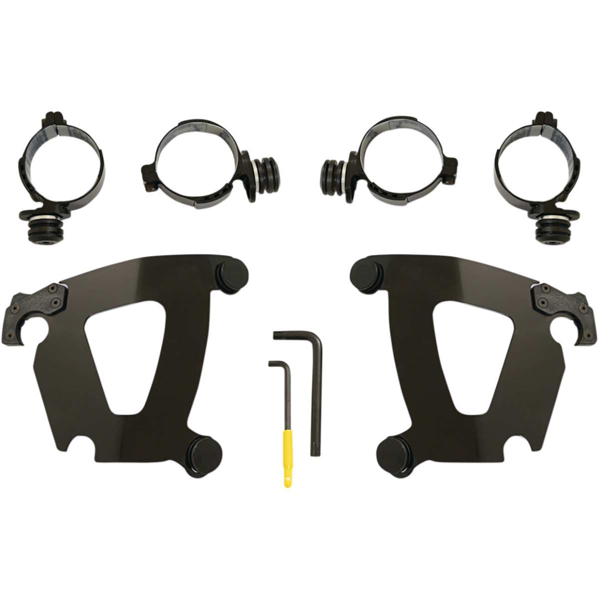 Angle Adjustable Model specific no-hassle installation, then on-off without tools. A pair of glass-filled nylon latches lock it down until the spring loaded "Trigger-Locks" are intentionally disengaged. Guaranteed never to rust or tarnish. Made exclusively of electrocoated aluminum and stainless steel, with stainless steel fasteners. Anchoring hardware is the same for all windshields and fairings for each bike. Made in the U.S.A. Made in Memphis!