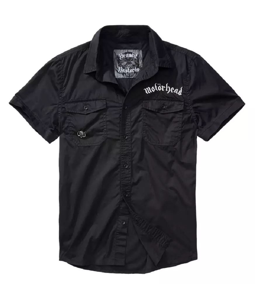 Motörhead-kauluspaita, musta lyhythihainen. Tyylikäs, kevyt paita näyttävillä yksityiskohdilla: koko selän mittainen valkoinen printti "Everything Louder Than Everything Else", vasemman rintataskun yläpuolella valkoinen Motörhead-brodeeraus, sekä oikeaan rintataskuun kiinnitetty Motörhead-pinssi. Paita on suoranmallinen ja materiaali 100 % puuvillaa.