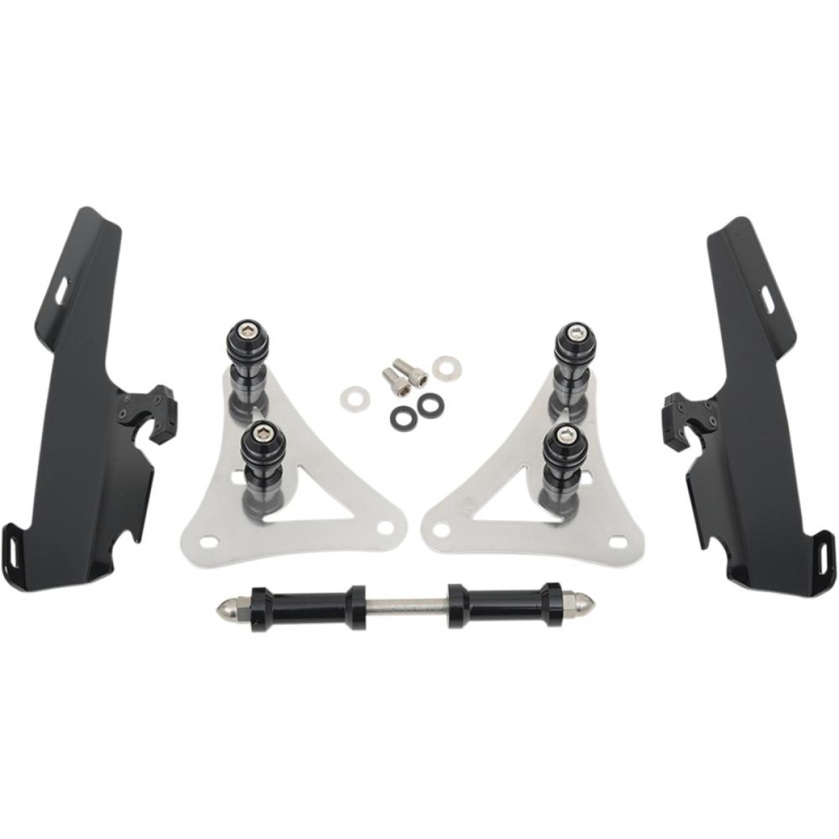 No-Tool Trigger-Lock mounting kits for Memphis Shades Windshields and Fairings. Gone are the days of fumbling with tools to remove your windshield. The revolutionary No-Tool Trigger-Lock hardware features an innovative system that allows you to quickly and easily remove your windshields without the use of any tools. A pair of latches lock the windshield down until the spring loaded “trigger locks” are intentionally disengaged, allowing the rider to remove the windshield. Hardware is fully adjustable to achieve just the right windshield angle. Kits are available in a combination of CNC-machined aluminum plates, stainless steel bolts and aluminum anchors, or black E-coated plates, bolts and anchors. Kits are custom-fit to each style of bike for a truly no-hassle installation. Made in the U.S.A.