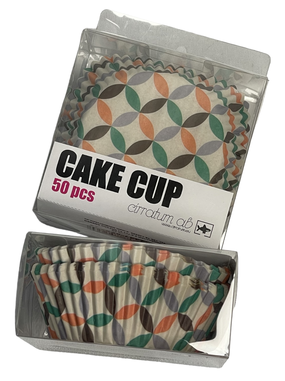 Muffinssivuoka 50 kpl, värikäs. Paperinen muffinssivuoka, paketissa 50 kpl. Luonnonvaalealla pohjalla retrosävyisiä kuvioita.