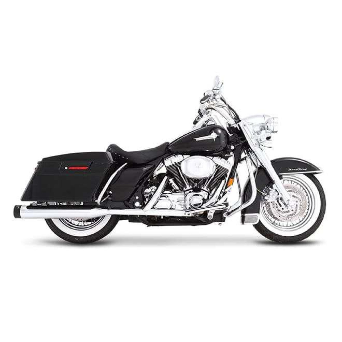 Rinehart Racing mufflers are known worldwide for their distinctive sound and appearance. Rinehart Slip-Ons feature the same race-proven muffler and baffle design as their full-length brethren in an easy-to-install package. Complete the look of your Harley with your choice of mufflers in either chrome or black, finished off with chrome or black end caps.