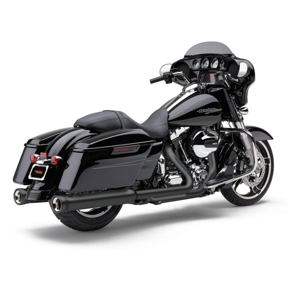 Overview Of Product: For Riders Who Think That Too Loud Is Just About Right Four-Inch Bodies Bell Out To 4-1/2" At The Rear, Which Features A Smooth, Rolled End Smooth, Rolled End Shape Adds A Megaphone Enhancement To The Sound Spiraled Louvered Core Exits In A Trumpet-Bell Shape That Allows The V-Twin Sound Track To Flow At Full Song New Raven Black Is Slightly Darker Than The Standard Black Finish Sold In Pairs Made In The U.S.A.