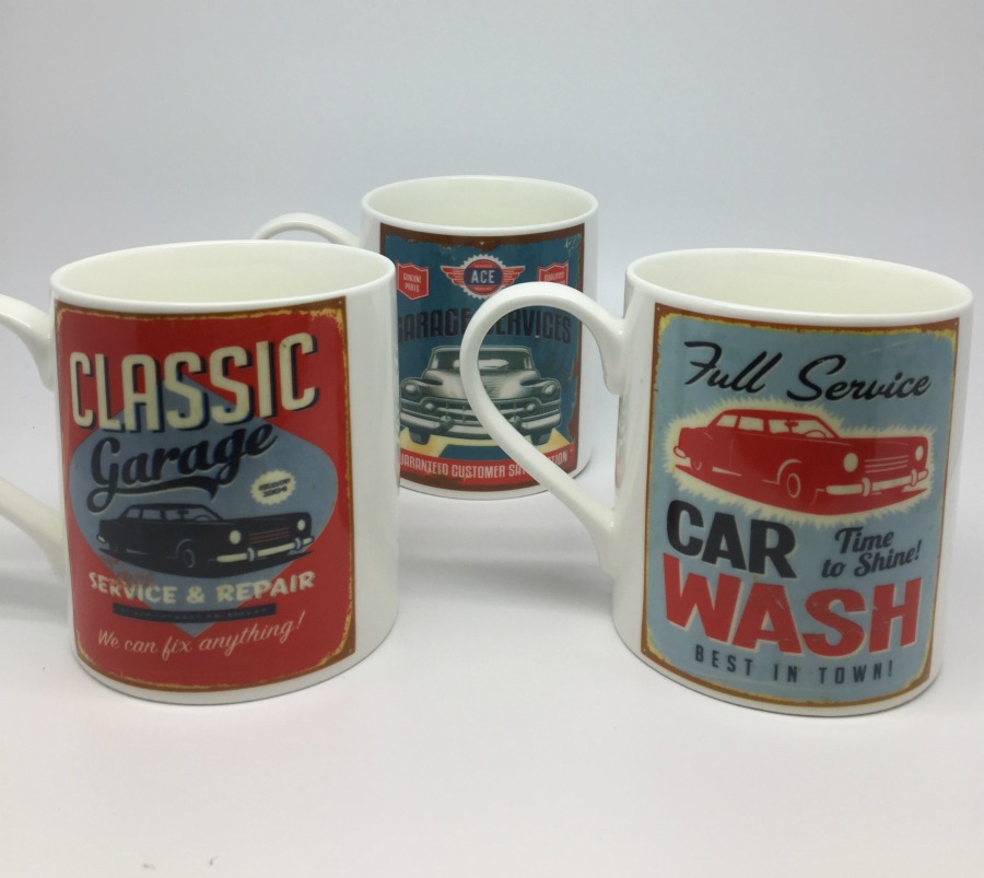 Muki, Classic Cars, erilaisia. Mikron ja tiskikoneen kestävät retro-mukit. Saatavilla kolmea erilaista autokuosia. Mukin koko n. 9,5 x 8,5 cm. Toimitetaan hienossa pahvirasiassa.