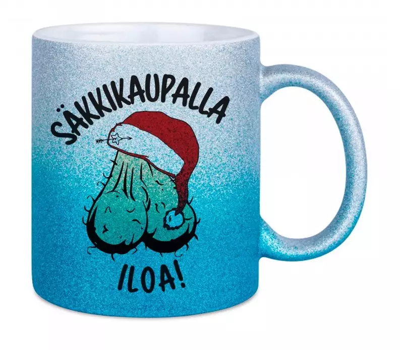 Muki Säkkikaupalla Iloa glitter. Jouluinen pakkasen purema muki glitterillä. Käsinpesua suositellaan. Vetoisuus 3,3 dl.