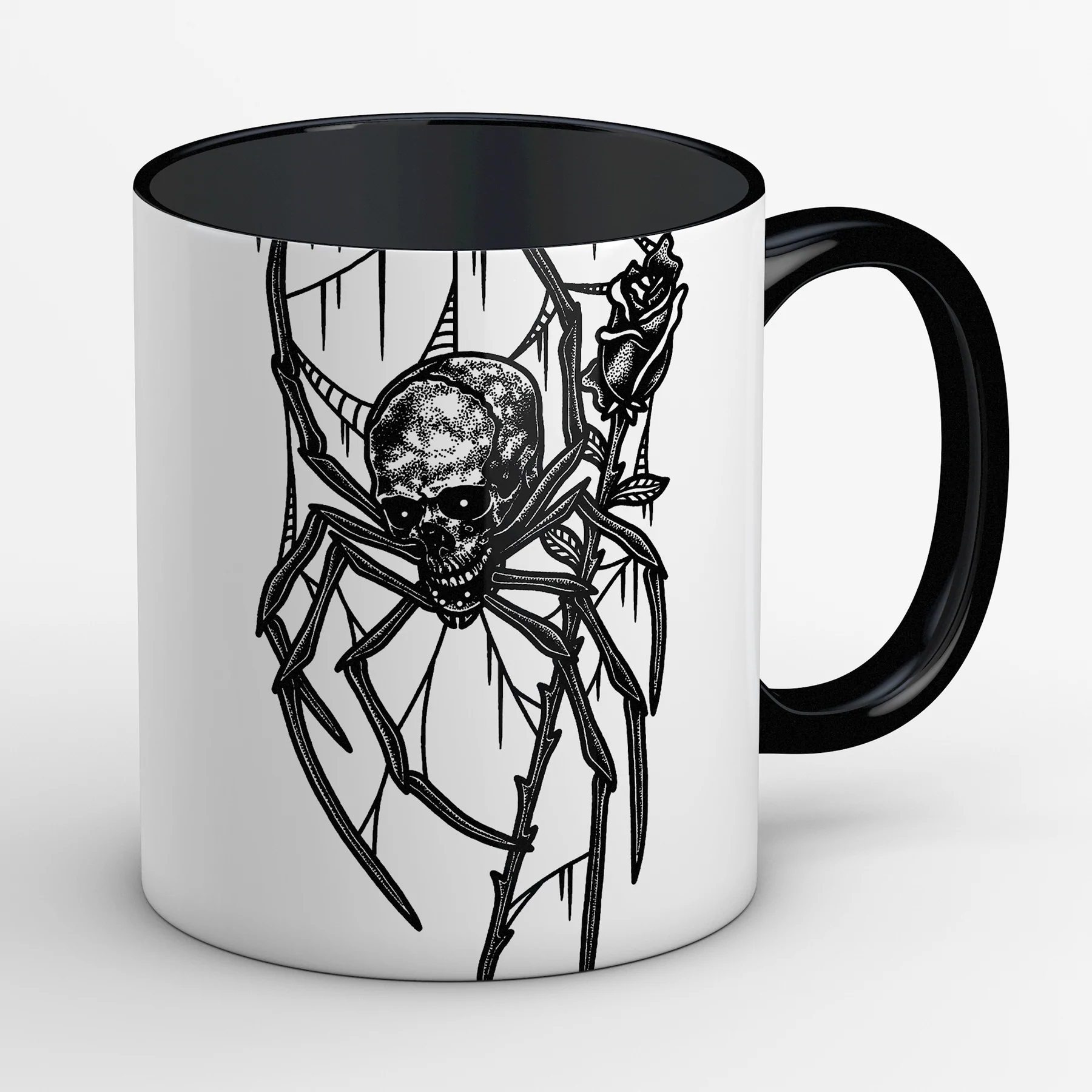 Muki Spider Rose, mustavalkoinen. Konepesun kestävä. Korkeus 95 mm, halkaisija 80 mm.
