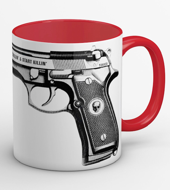 Muki Stop Chillin, Toxico. Kaksisävyinen muki, punavalkoinen, jossa musta printti. Vetoisuus n. 3,25 dl. Mukin voi pestä astianpesukoneessa.