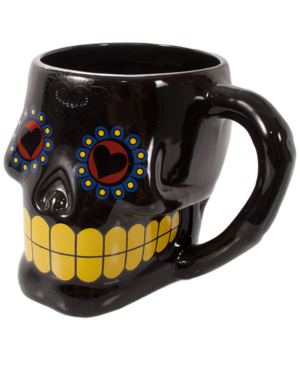 Muki, coloured skull, musta. Pääkallomukin korkeus 10 cm ja mukin halkaisija 8 cm.