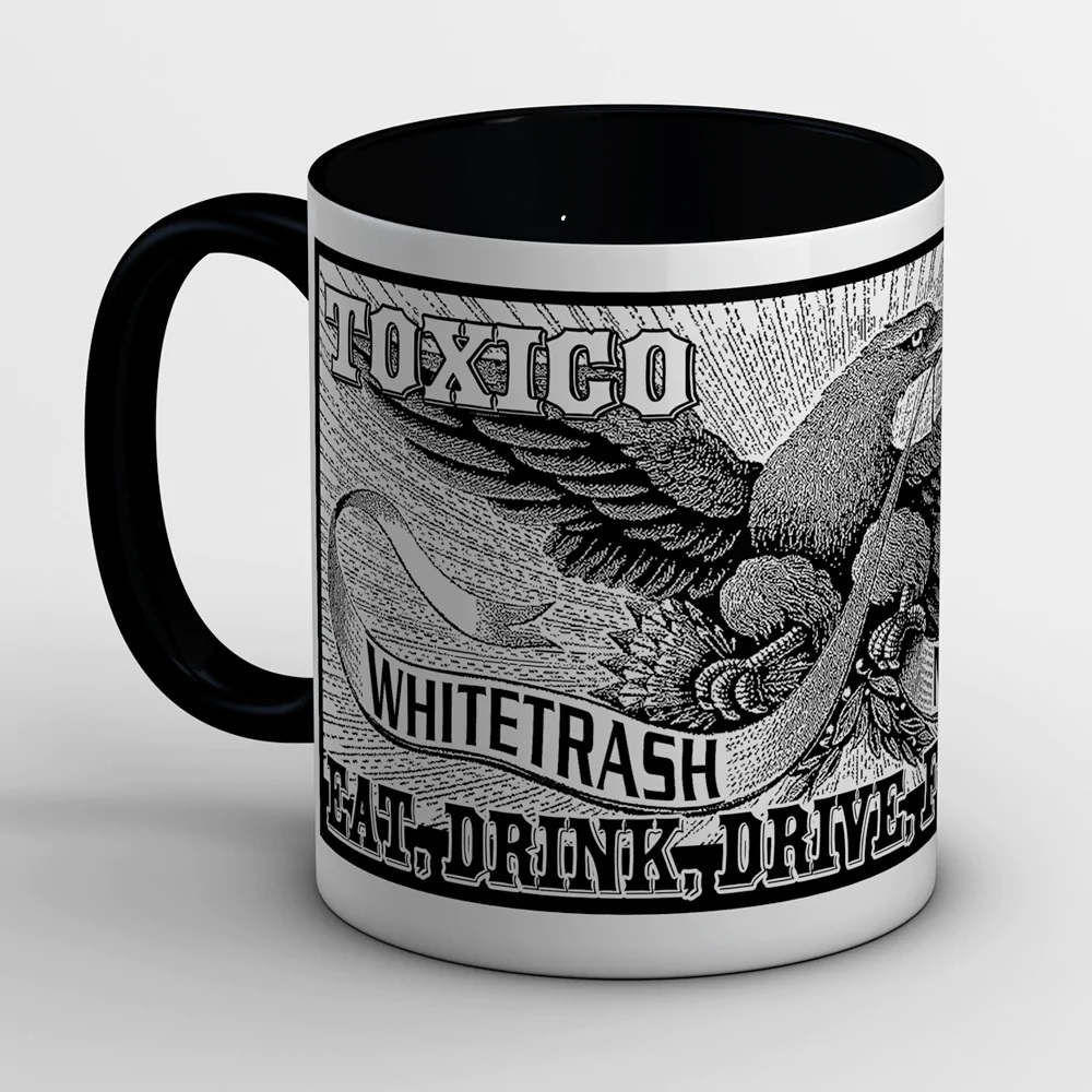 Muki Whitetrash Manifesto, valk./musta. Konepesun kestävä. Korkeus 95 mm, halkaisija 80 mm.