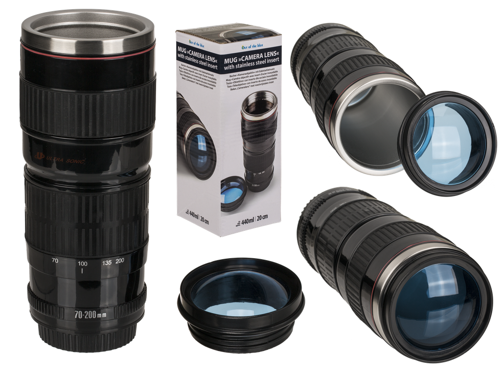 Muovimuki, Kameranobjektiivi n. 440 ml N. 20 cm, sisällä ruostumatonta terästä