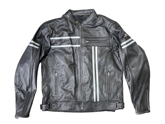 Nahkatakki, Ajotakki. Prospeed tracker harmailla raidoilla. Irroitettavat vuorit, selkäpanssari, sekä olka ja kyynärsuojat. Paksua ja tukevaa naudannahkaa.