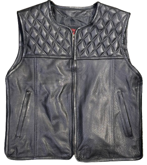 Nahkaliivi mustaa läpivärjärryä cow hide premium pintanahkaa Timanttitikkaus yläosa ja reijitetty alaosa Vetoketjulliset käsitaskut edessä Povitaskut molemmin puolin Lisänä oikealle kädelle... Lue lisää