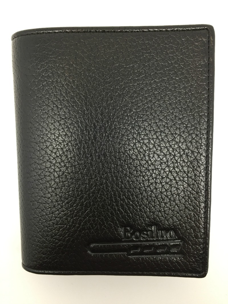 Nahkalompakko, Bosiluo, musta . Nahkainen musta lompakko, jossa 5 korttitaskua joista yksi on ikkunallinen. Lisäksi kaksi setelitaskua, yksi vetoketjullinen tasku sekä kaksi muuta taskua. Lompakon koko 9,5 x 10 cm.