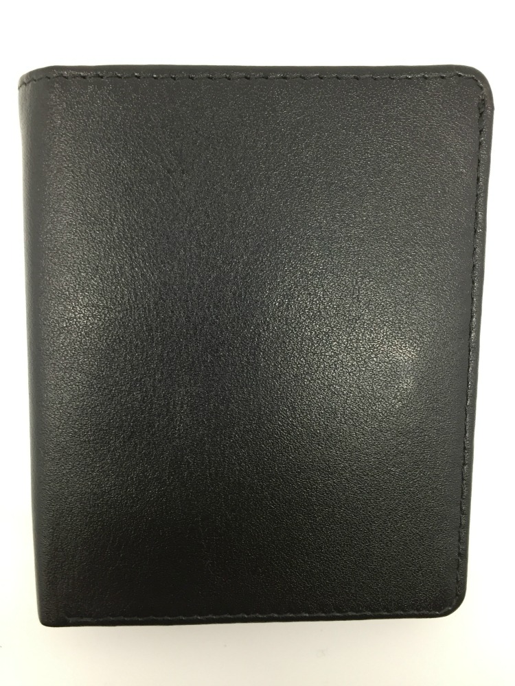 Nahkalompakko, musta. Näppärän kokoinen nahkalompakko. Tilaa kahdeksalle kortille, joista yksi ikkunallinen korttipaikka. Vetoketjullinen korttitasku sekä setelitasku. Lompakon koko 8 x 10,5 cm.