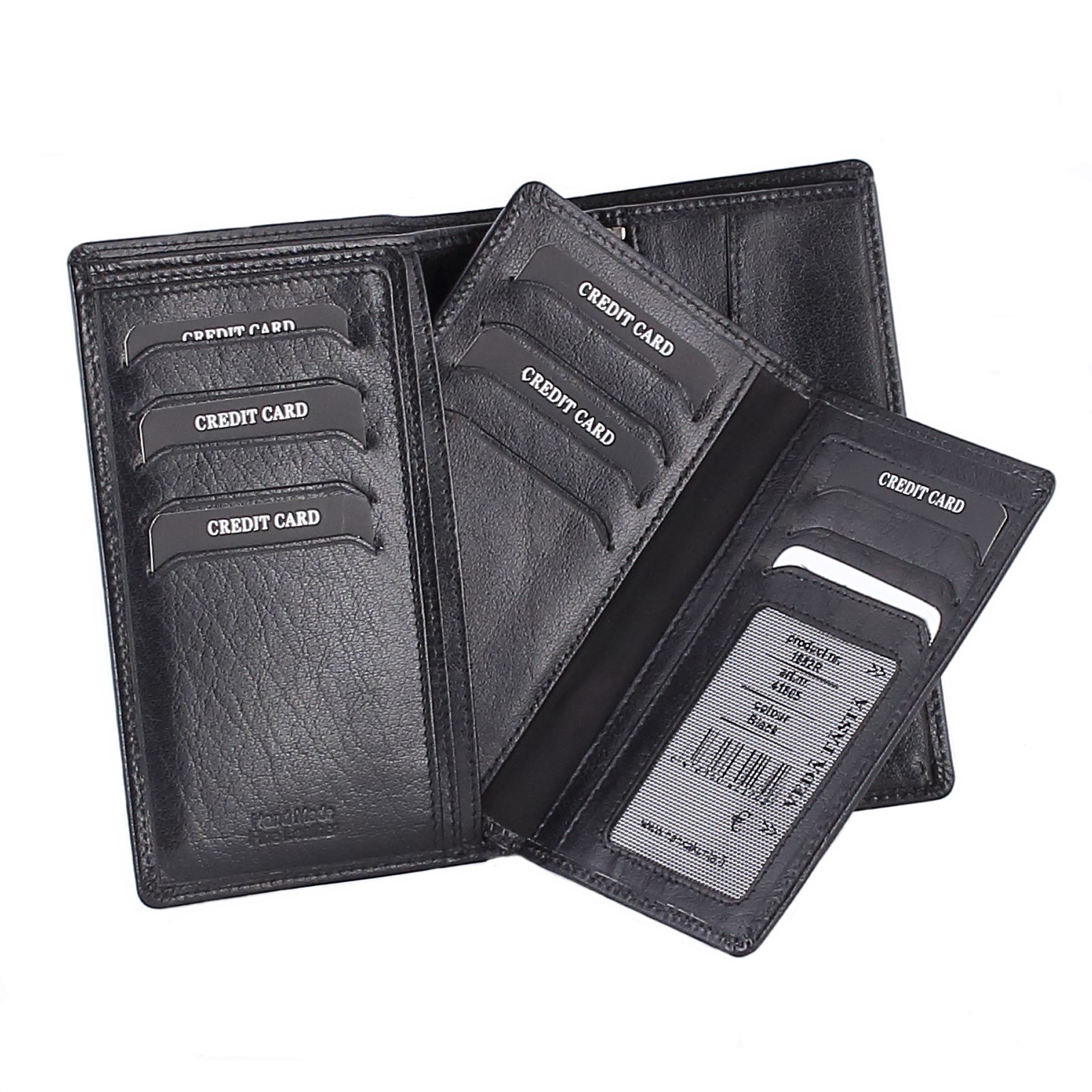 Isompi lompakko jossa runsaasti korttipaikkoja( 11 kpl) sekä irroitettava sisäosa pienempään tarpeeseen. Hieno klassikkomalli. Tuotteen koko suljettuna 155 mm X 100 mm.