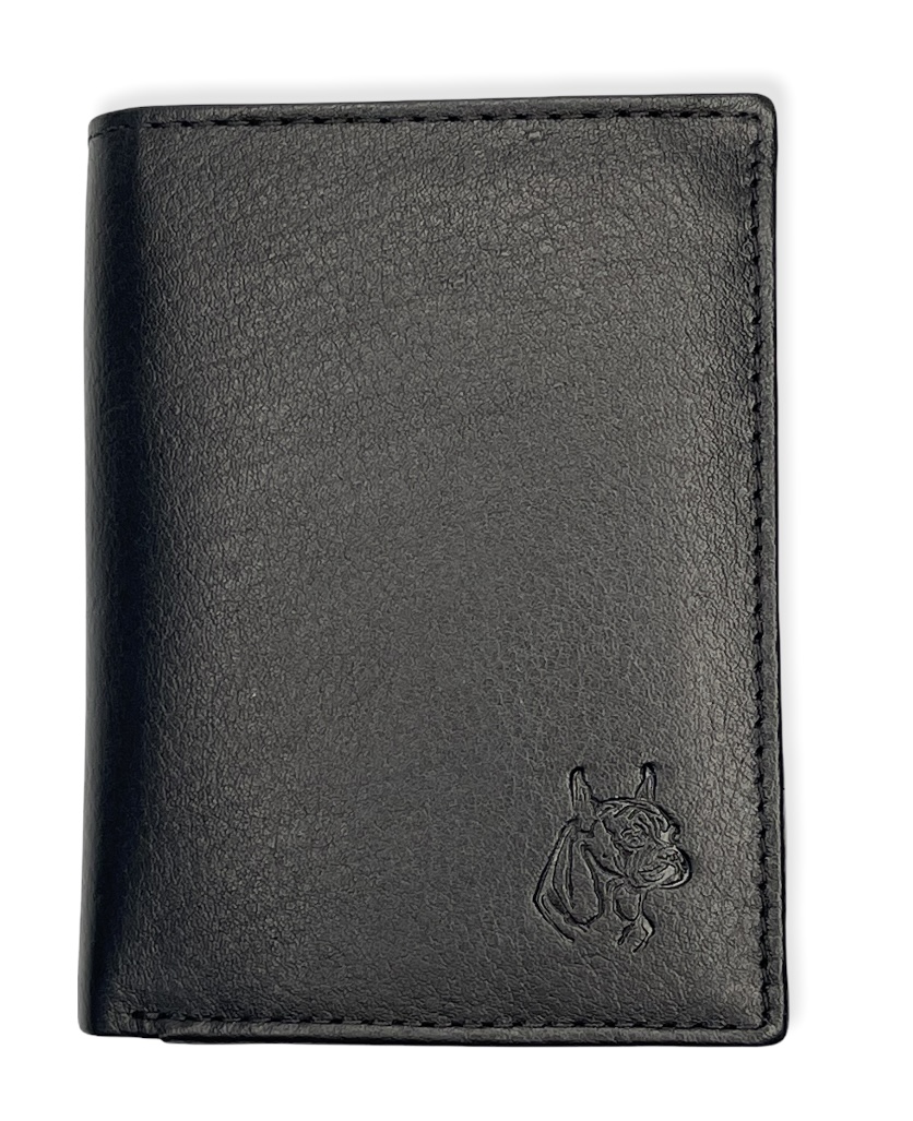 Pikkulompakko RFID-suojattu, musta. Kätevänkokoinen, musta nahkalompakko. Pienestä koostaan huolimatta melkoinen tilaihme. Korteille on 11 paikkaa, joista yksi läpinäkyvä muovitasku ajokortille, kuiteille pari omaa taskua, kolikoille oma pieni vetskatasku ja seteleille oma kaksiosainen taskunsa. Lompakon mitat 80 x 115 x 25 mm.