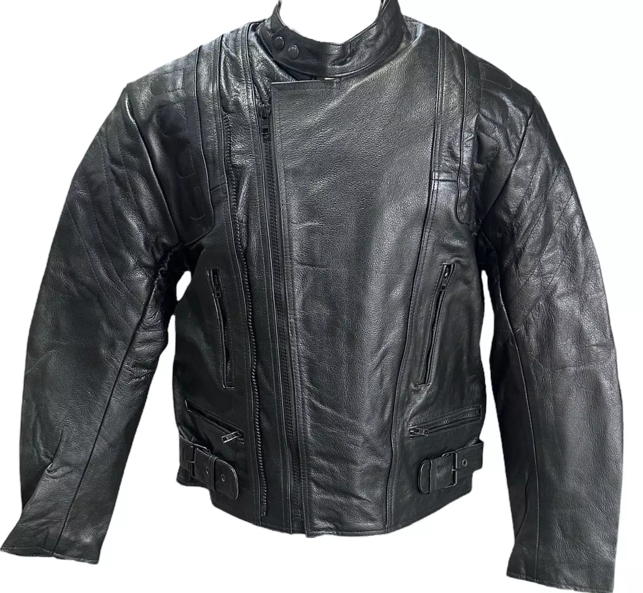 Nahkatakki Buffalo musta, paksua naudan nahkaa. Takissa on irroitettava vuori vetoketjukiinnityksellä. Sisävuorissa on myös irroitettavat suojukset.