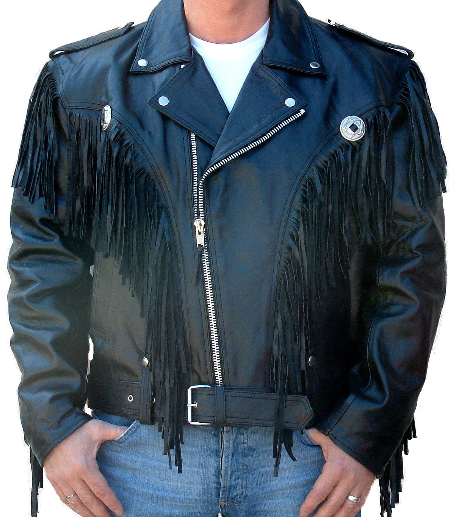 Nahkatakki, Concho koristeinen hapsutakki. Läpivärjättyä mustaa jämäkkää nautaa.
