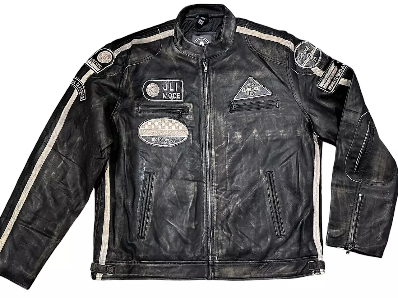 Nahkatakki JLI Vegas, 100 % lammasnappaa. Pystykaulus, vetoketjulliset rintataskut, ja avonaiset alataskut edessä. Lisäksi kyynärpaikat saa avattua vetoketjulla, jos haluaa laittaa omat pehmusteet tai käyttää taskuna. Varsinaisia suojusten paikkoja takissa ei ole. Sivusaumoissa alhaalla vetoketjuhalkiot, jotka avaamalla saa helmaan lisätilaa. Lisäksi helmassa on nepparilliset kiristystampit vetskahalkioiden päällä, jotta helmaa saa myös pienennettyä. Hihansuissa on vetoketjuilla avattavat halkiot. Tehosteena takissa on brodeerattuja nahkamerkkejä, sekä kontrastiraitoja hihoissa ja sivusaumoissa. Vuorissa on kaksi povaria, molemmin puolin vetoketjua. Vasemmalla on vetoketjullinen povari ja oikealla on avoin listatasku. Vuorin materiaali 100 % polyesteri.