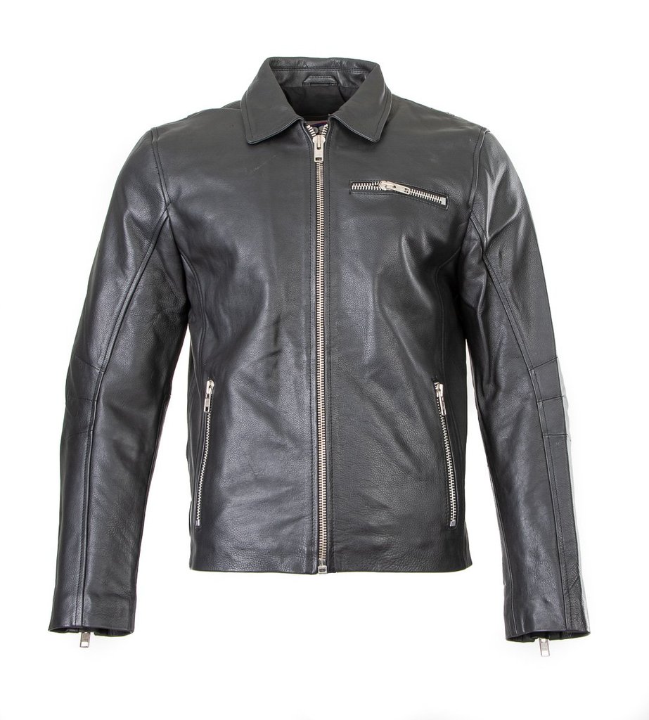 Nahkatakki. Prätkärotsi suoralla jykevällä vetoketjulla. Mustaa naudan nahkaa.