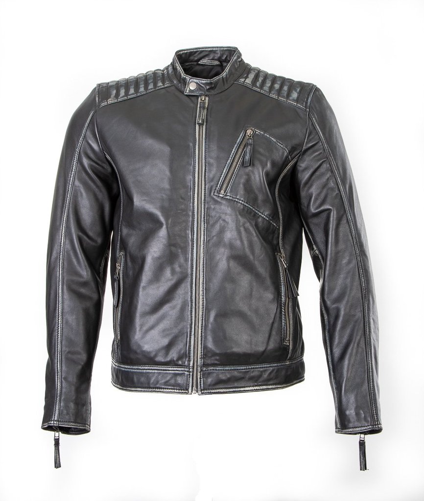 Nahkatakki musta saumoista kulutettu