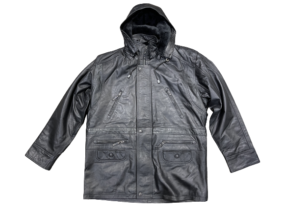 Nahkatakki musta pidempi malli, ajurintakki tyylinen. Irto vuorilla ja irto hupulla. REILUT koot.