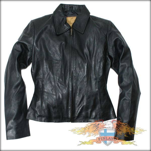 Naisten musta nahkatakki. 100 % nahkaa, vuori 100 % polyamidia. Takissa on vetoketjulliset sivutaskut ja lisäksi povitaskut molemmin puolin. Koot melko niukkoja, kannattaa tsekata alla oleva mittataulukko ja vertailla kokoja hieman nykyiseen takkiin.