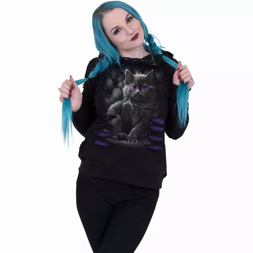 Suuri huppu Ripped Hoody Purple-Black on valmistettu huippulaadukkaasta 100 % puuvillasta, fleecestä käyttäen ihoystävällisiä, atso-vapaita, reaktiivisia väriaineita.