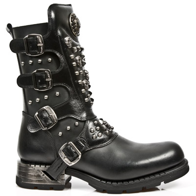 New Rock maiharit M.MR019-S1. Mustat, puolikorkeat maiharit, soljilla ja niiteillä. Solkikiinnitys toisella sivulla ja toisella sivulla vetoketju, joka helpottaa kenkien pukemista ja riisumista. Korko 4 cm, pohja 2 cm.