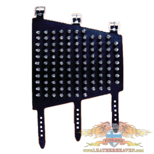 Niittiranneke, 11 rivinen rotta, musta nahkainen ranneke rottaniiteillä. Solkikiinnitys. Myydään kappaleittain.