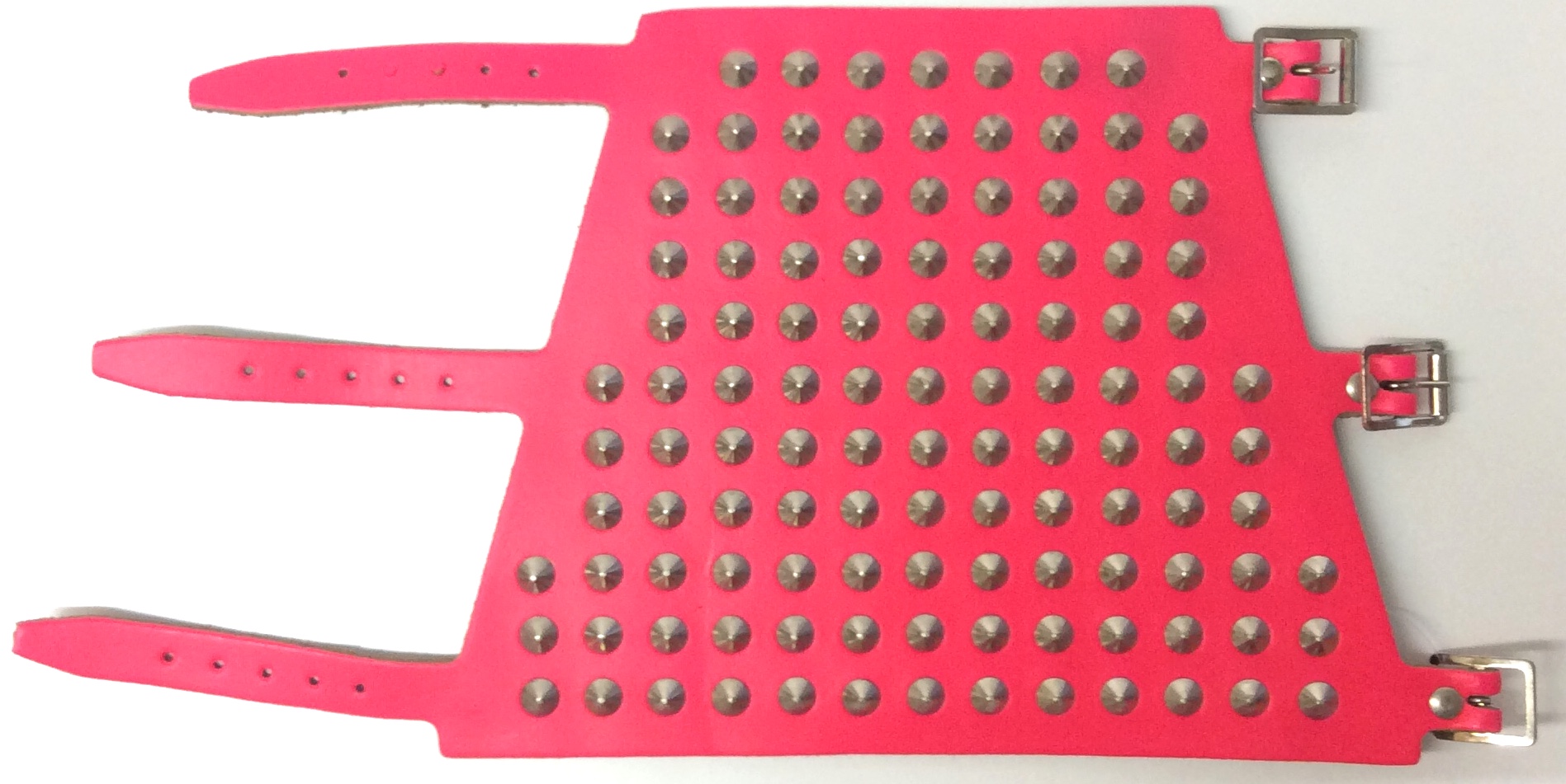Niittiranneke pinkki, kartio 11 rivinen. 11-rivinen pinkki niittiranneke.