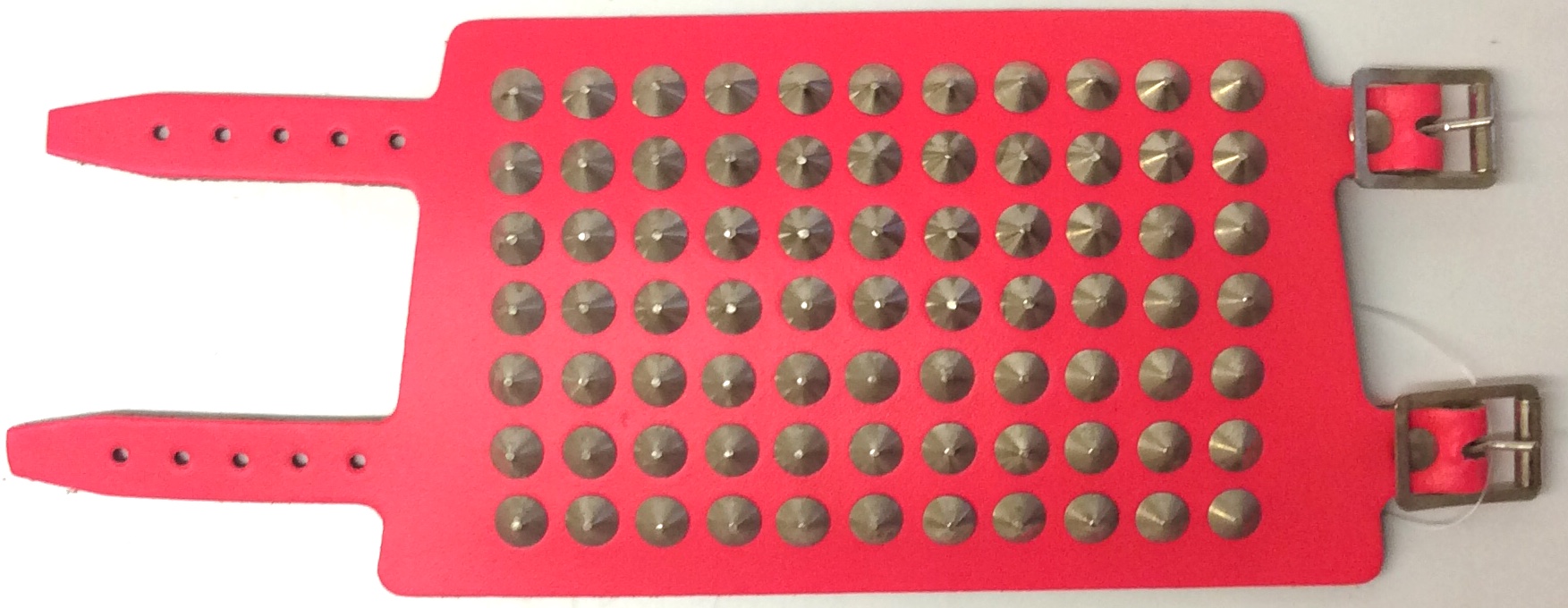 Niittiranneke pinkki, kartio 7.rivinen. 7-rivinen pinkki niittiranneke.