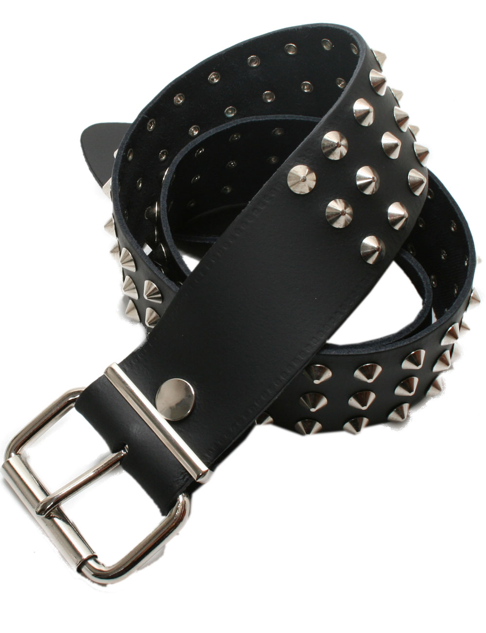 Niittivyö, 3 riv. matalakartio, nahkainen vyö niiteillä.
