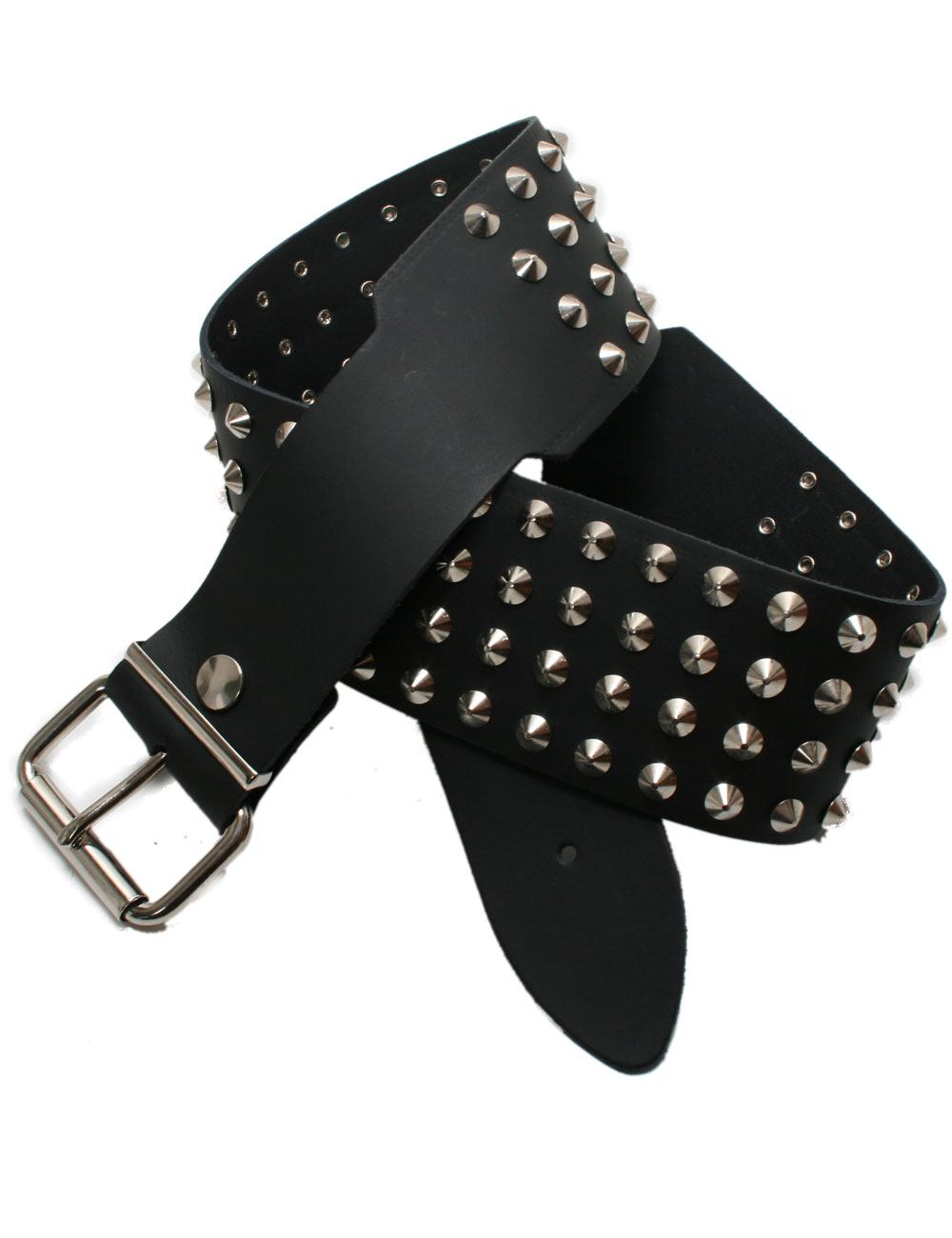 Niittivyö, 4 riv. matalakartio, nahkainen vyö niiteillä.