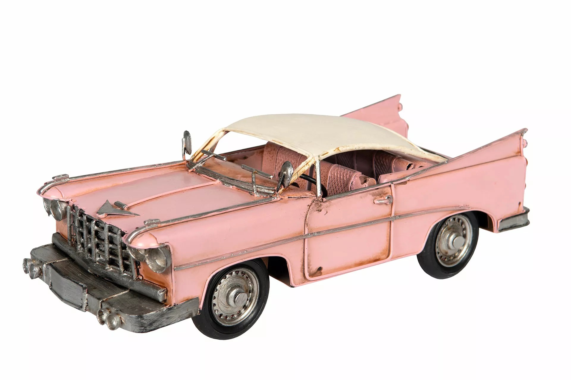 Nostalgia auto vaaleanpunainen. A Lot Decoration. Auton mitat 31,5x14x10 cm. Metallinen pienoismalli, jossa pyörivät renkaat. Valmistettu käsityönä, handmade.
