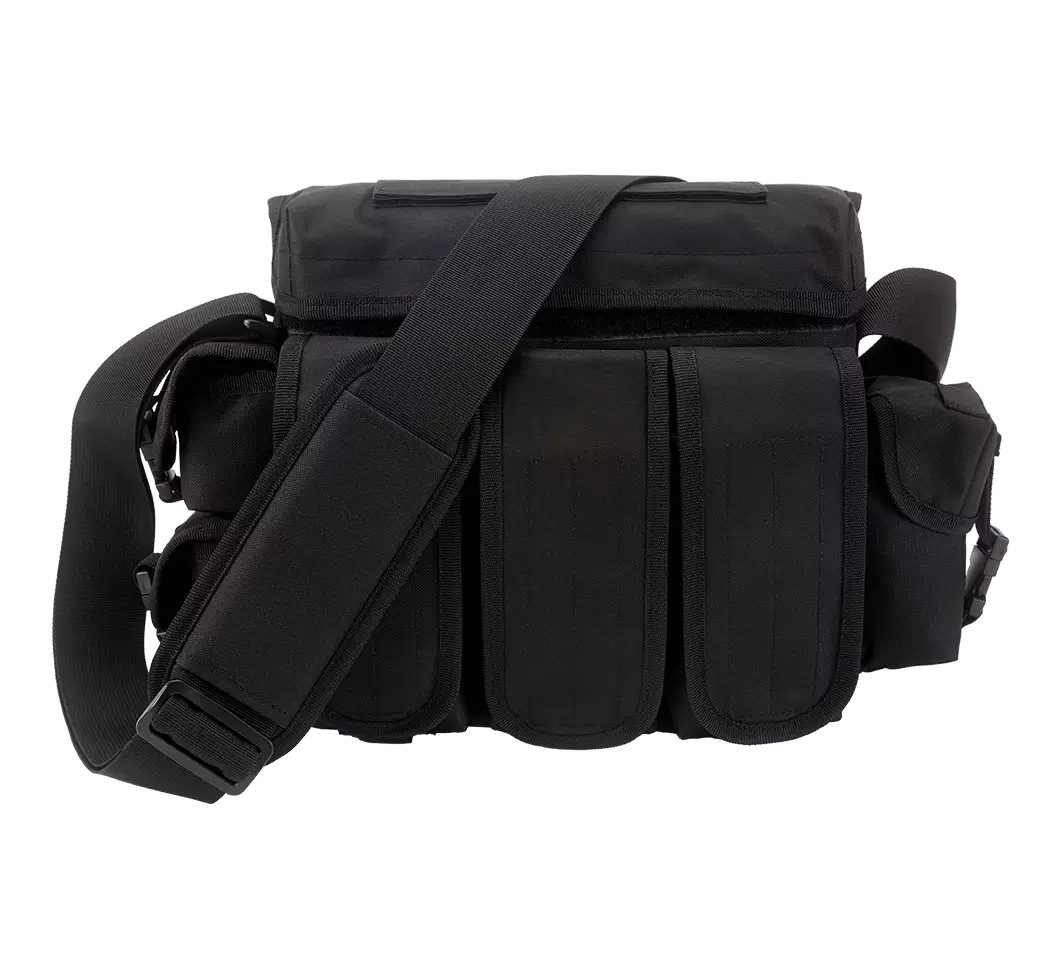 Olkalaukku, Black Grab Bag. Monitaskuinen, toiminnallinen olkalaukku, jossa paljon tarrakiinnitteisiä taskuja ja nauhalenkkejä. Olkahihnassa pehmuste joka vähentää hihnan aiheuttamaan painetta olalle. Laukun mitat lev. 28 x kork. 24 x 8 cm. Materiaali 600D polyesteri.
